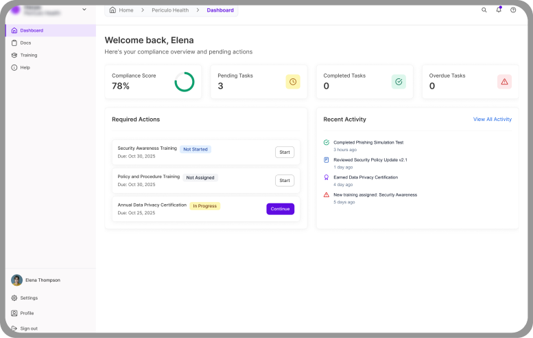 Pericore is a cybersecurity and compliance platform designed for healthcare, medical device, and critical service organizations. The UI/UX redesign focuses on transforming complex security and compliance data into clear, actionable insights that both technical and non-technical users can easily understand. The goal was to reduce cognitive overload, improve compliance clarity, and enable collaboration within a modern, accessible interface.